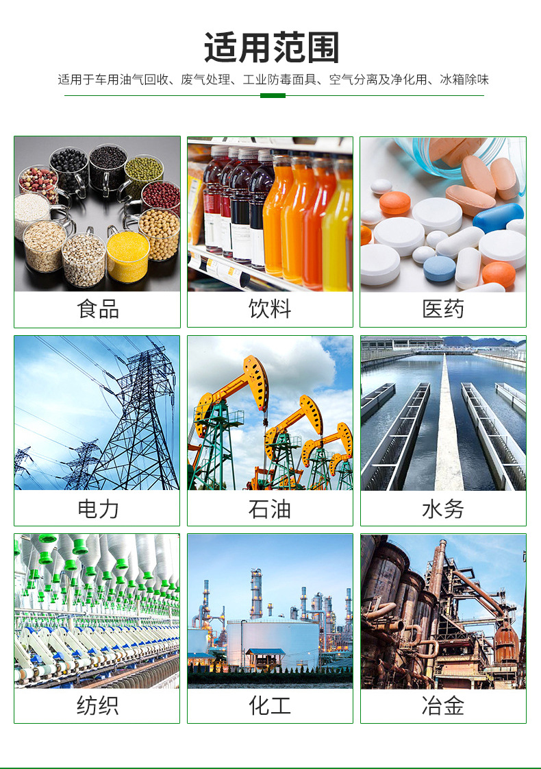 煤質(zhì)顆;钚蕴渴且栽簽樵希(jīng)過炭化、活化,制成的一種多孔性碳素物質(zhì)。它具有一定的機(jī)械強(qiáng)度和很大的比表面積,具有很強(qiáng)的吸附性能,廣泛地應(yīng)用于化工原料氣體。